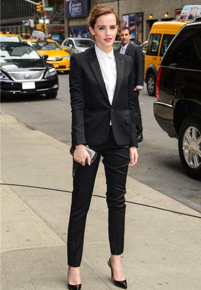 Emma Watson的這身職業(yè)西裝定制造型曾讓很多人眼前一亮,細(xì)腿幾分褲搭配小圓領(lǐng)襯衫,看起來精致小巧,年輕時髦。